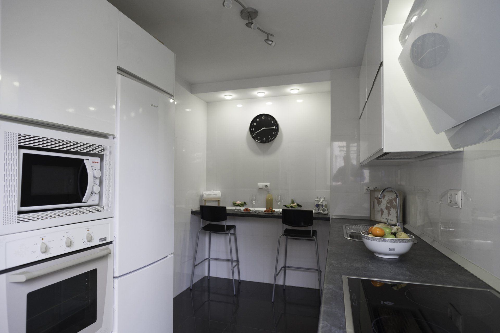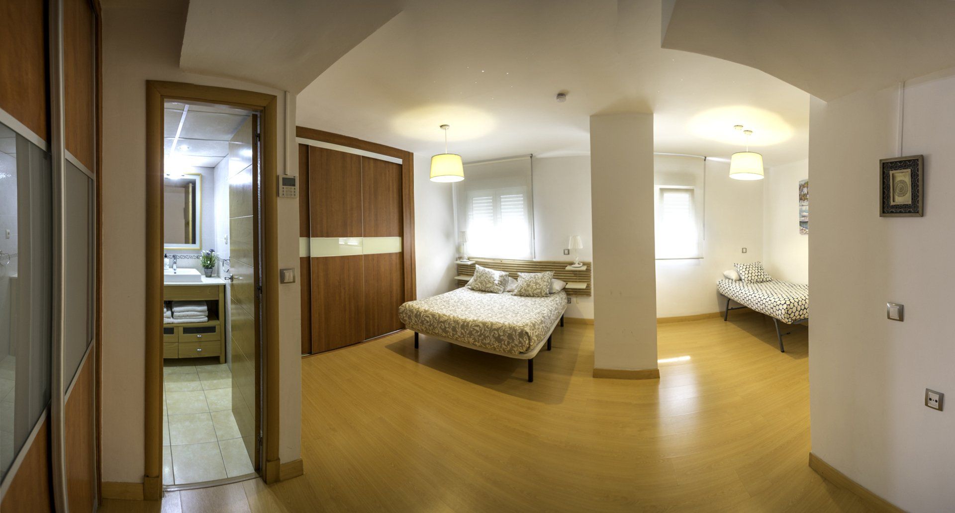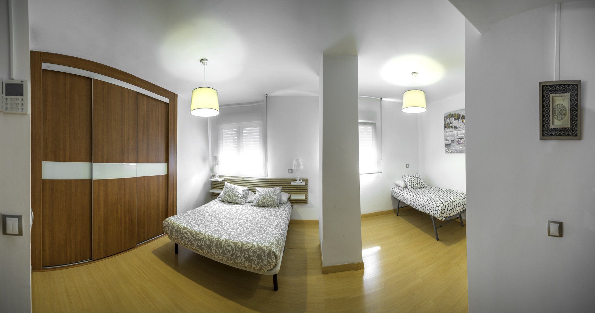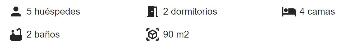 Tiene dos habitaciones con cama de matrimonio y un sofá-cama en el salón para dos personas. Posee un baño dentro de la habitación principal con ducha y otro en el pasillo del piso con bañera.