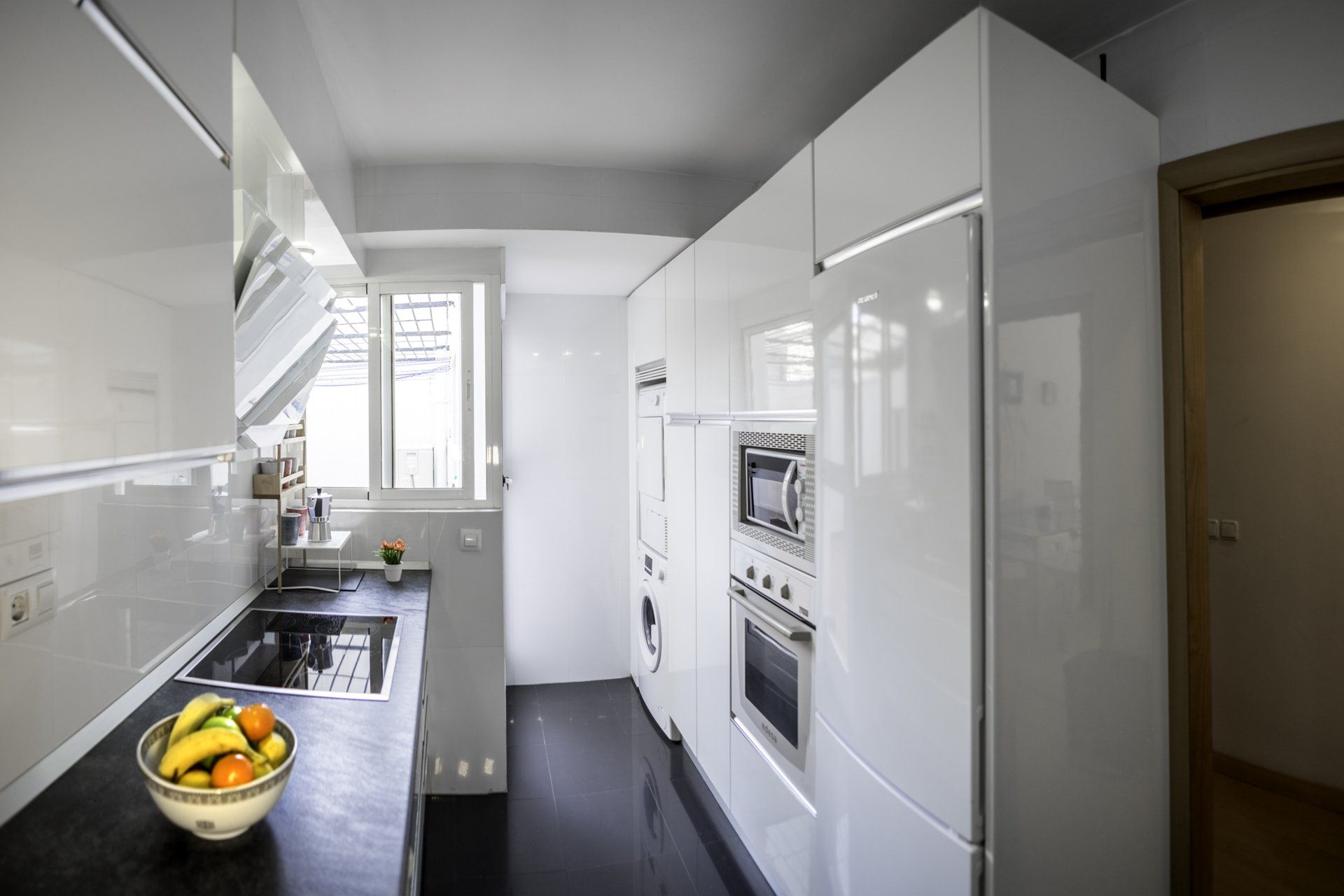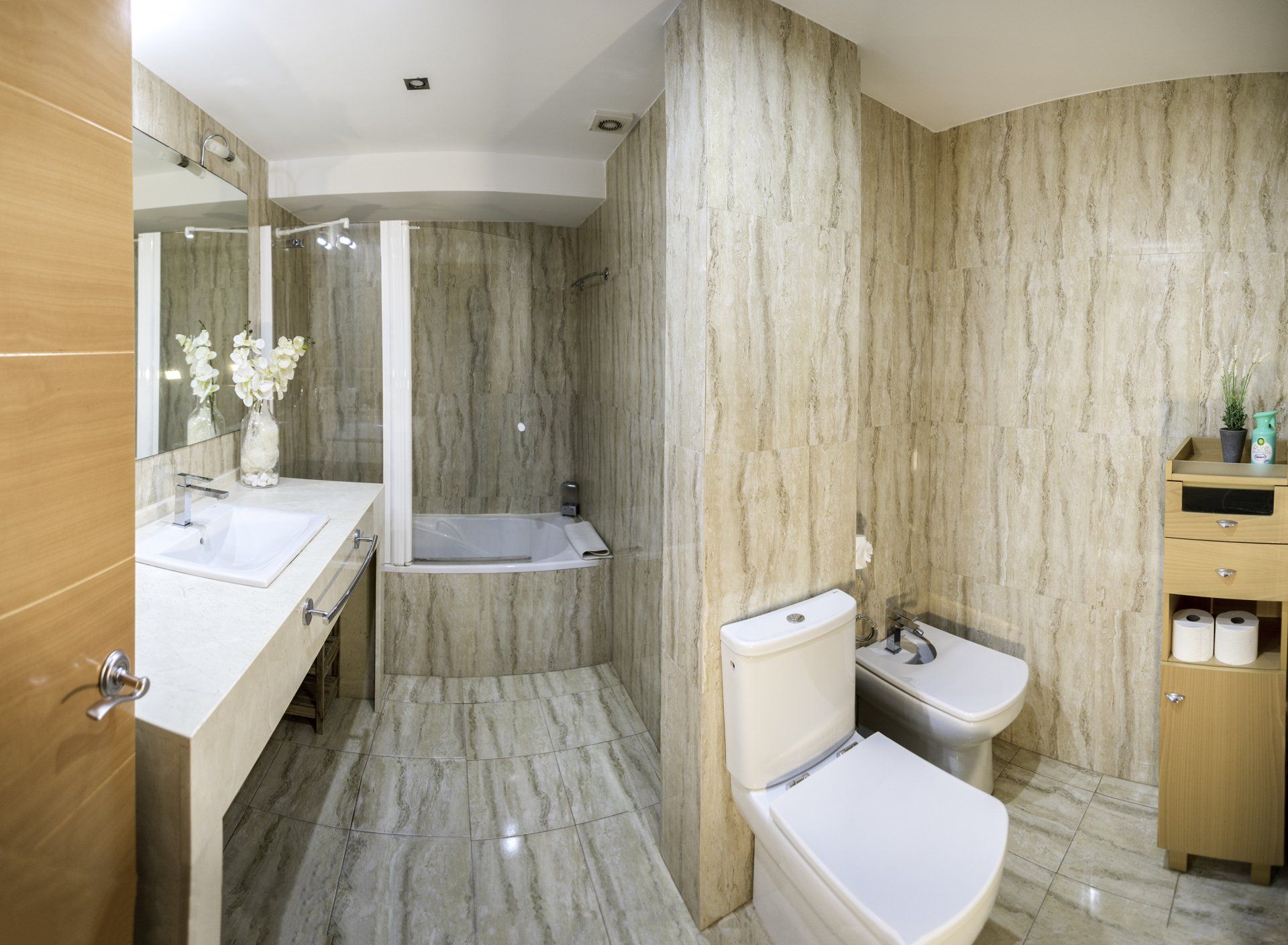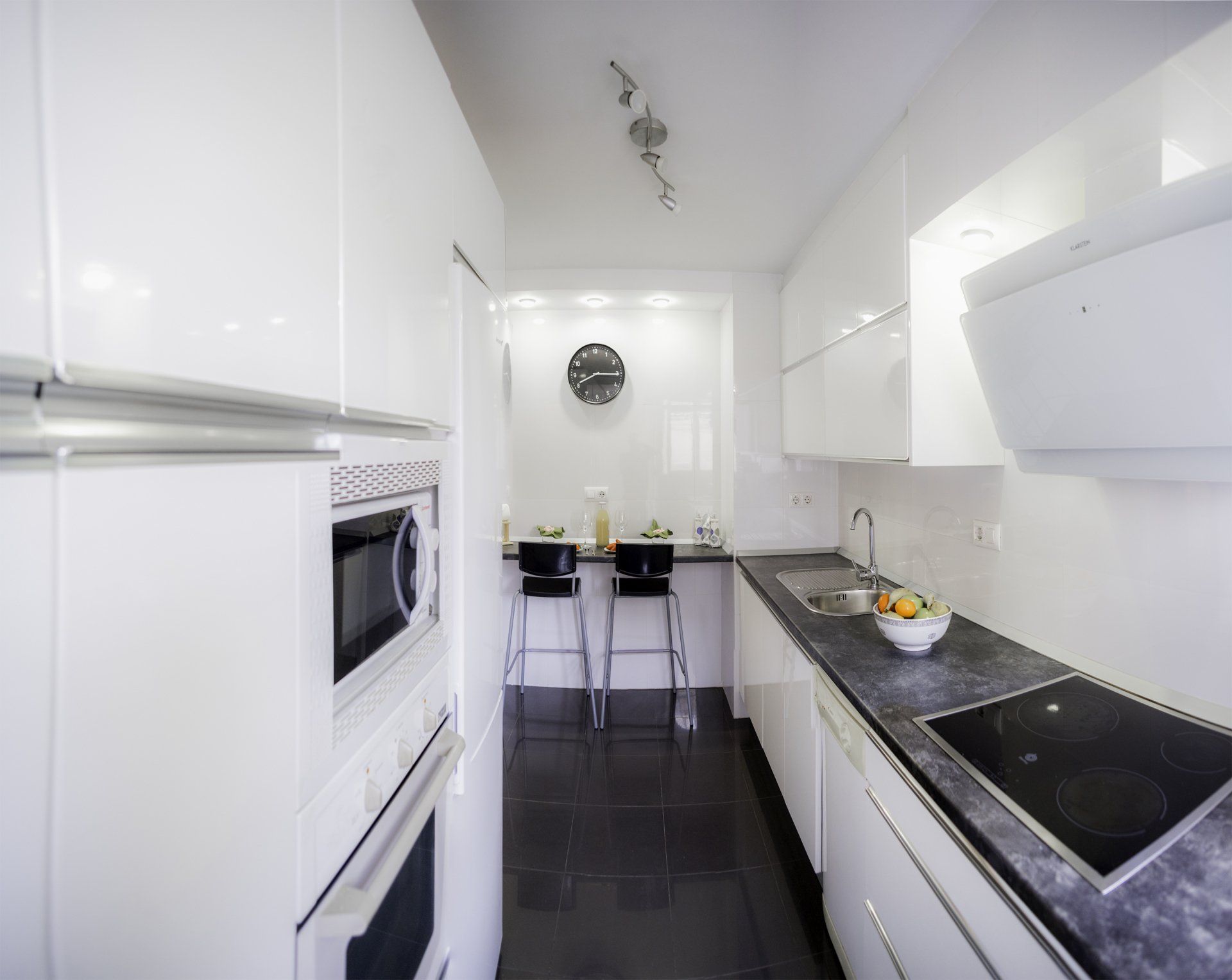 Tiene dos habitaciones con cama de matrimonio y un sofá-cama en el salón para dos personas. Posee un baño dentro de la habitación principal con ducha y otro en el pasillo del piso con bañera.