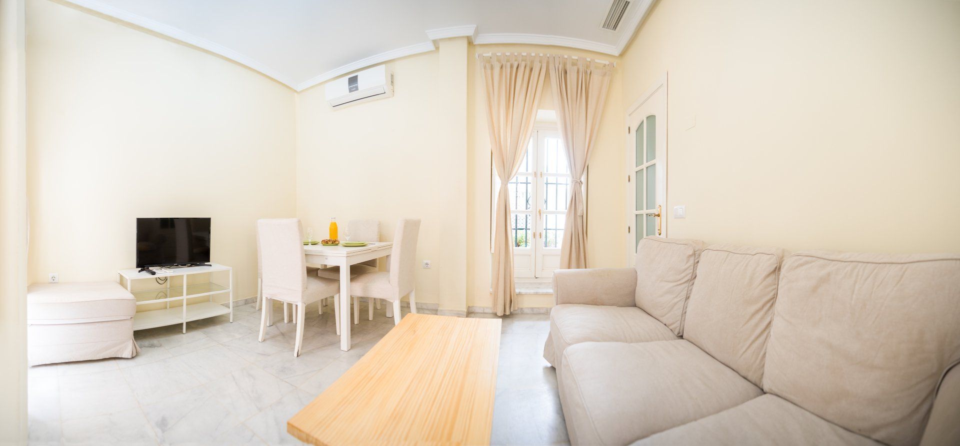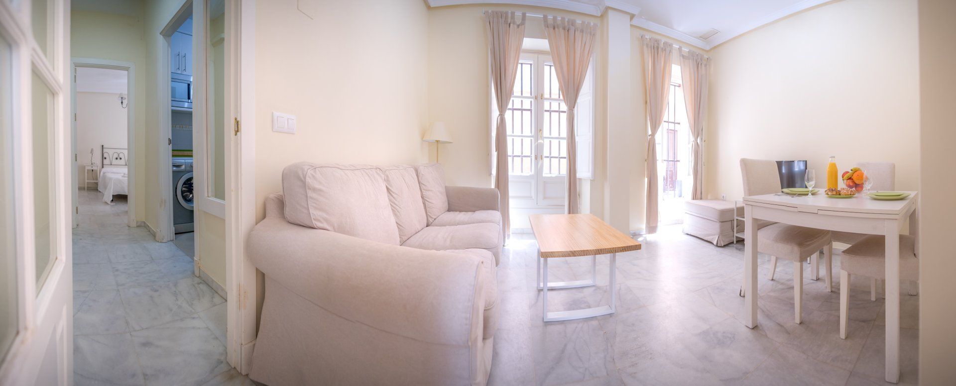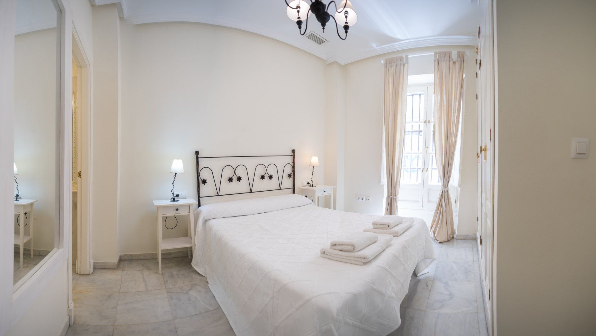 Apartamento en pleno centro de Cádiz, a un paso del Gran Teatro Falla y de la Plaza de San Antonio y a un paseo de la Playa de La Caleta. El apartamento se sitúa en una finca reformada con patio central muy silenciosa y elegantemente decorada. Ideal para estancias tranquilas, el apartamento consta de salón, cocina totalmente equipada, una habitación principal con cama de matrimonio y un baño. El apartamento tiene servicio de wifi gratuito.