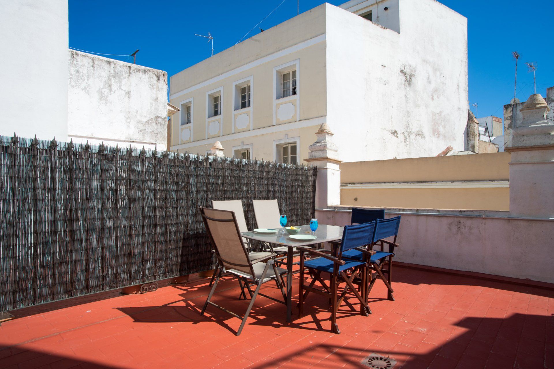 Ático en pleno centro de Cádiz, a un paso del Gran Teatro Falla y de la Plaza de San Antonio y a un paseo de la Playa de La Caleta. El apartamento se sitúa en una finca reformada con patio central muy silenciosa y elegantemente decorada. Ideal para estancias tranquilas, el apartamento consta de salón, cocina totalmente equipada, una habitación principal con cama de matrimonio y un baño. Además dispone de amplia terraza al aire libre donde disfrutar del tiempo excelente de Cádiz. El apartamento tiene servicio de wifi gratuito.