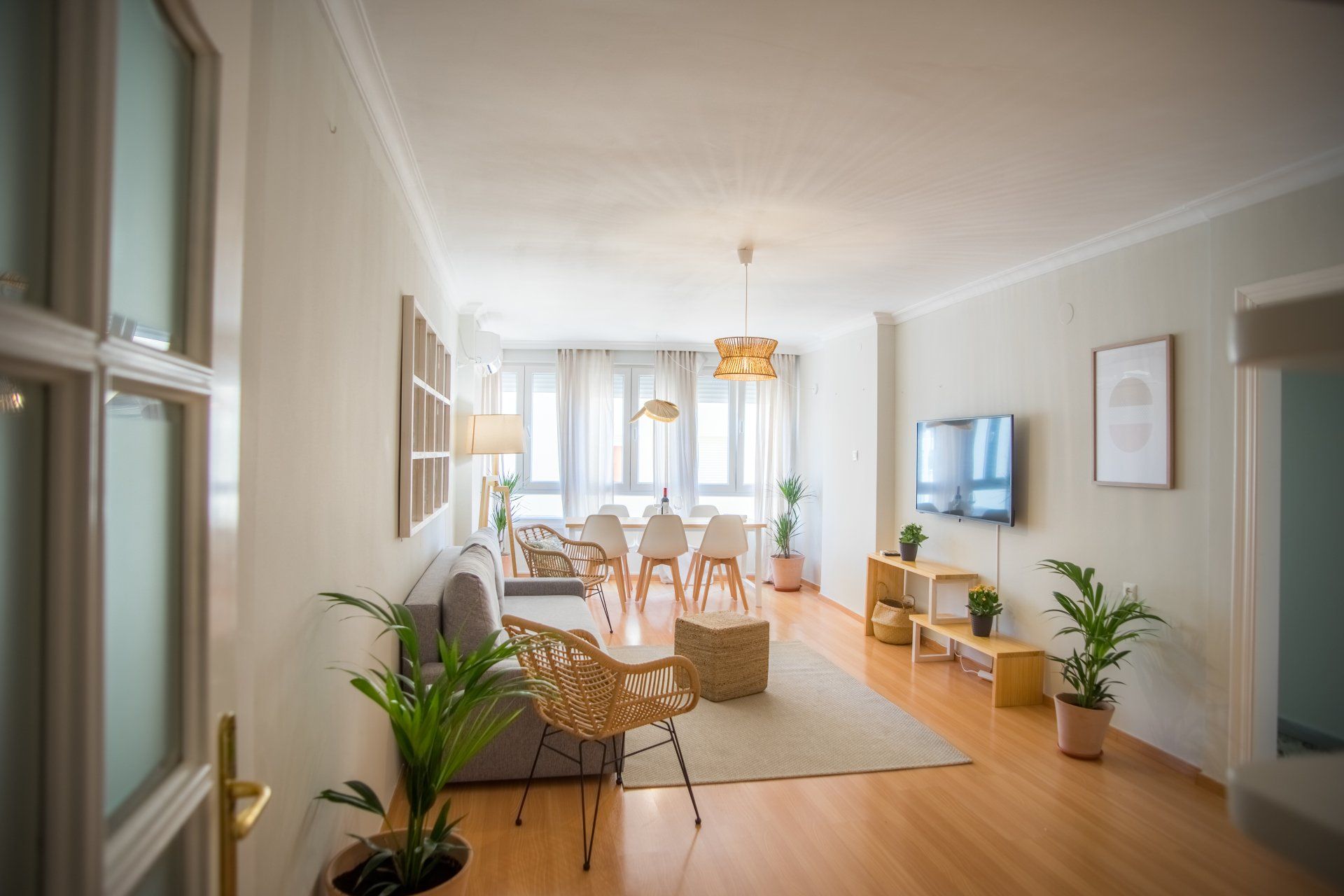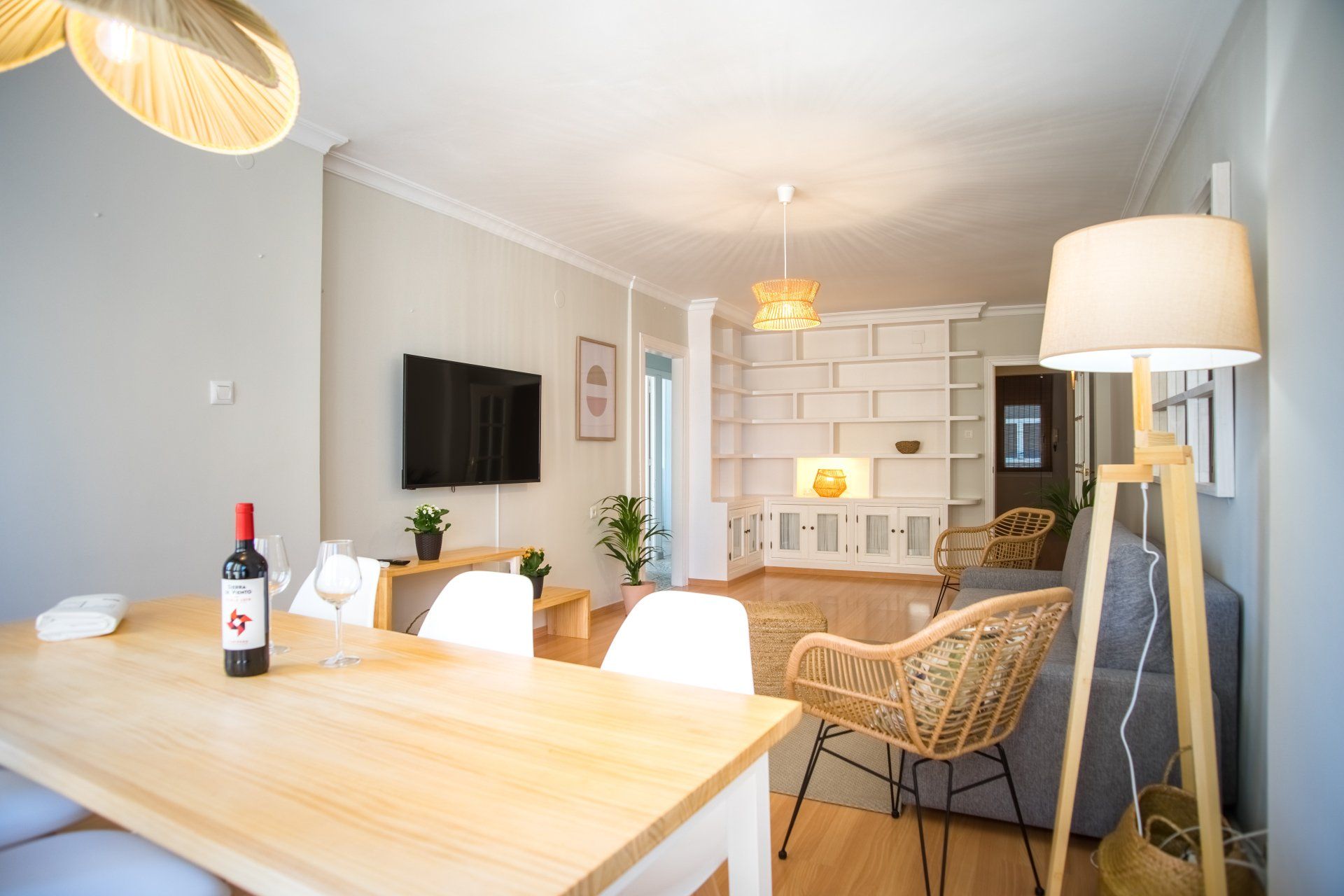 Amplio apartamento de 120 metros en pleno Paseo Marítimo. Muy luminoso, con vistas a la Playa Victoria de la cual le separa 30 metros, es el alojamiento perfecto para pasar las mejores vacaciones. Consta de tres habitaciones, salón, cocina, dos baños, despensa y lavadero. Su ubicación le permite estar cerca de restaurantes, supermercados, bares de copas, centros de negocio, el Estadio Carranza y tiendas de recuerdos.