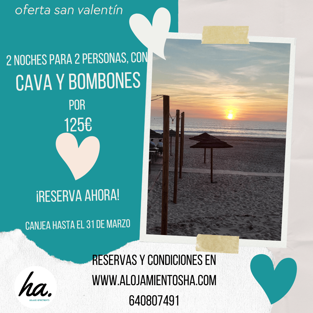 Oferta de estancia de 2 noches para 2 personas en cualquiera de nuestros fabulosos apartamentos con regalo de botella de cava y bombones. Condiciones: La oferta puede canjearse hasta el 31 de marzo de 2021 sin cargo adicional. El período de 25 de febrero de 2021 al 6 de marzo queda excluída de la promoción. Promoción sujeta a disponibilidad de los apartamentos Una vez pasado el período de canje, la cuantía abonada por la promoción será convertida en un vale de 125€ a gastar durante el año 2022 en cualquiera de nuestros apartamentos.